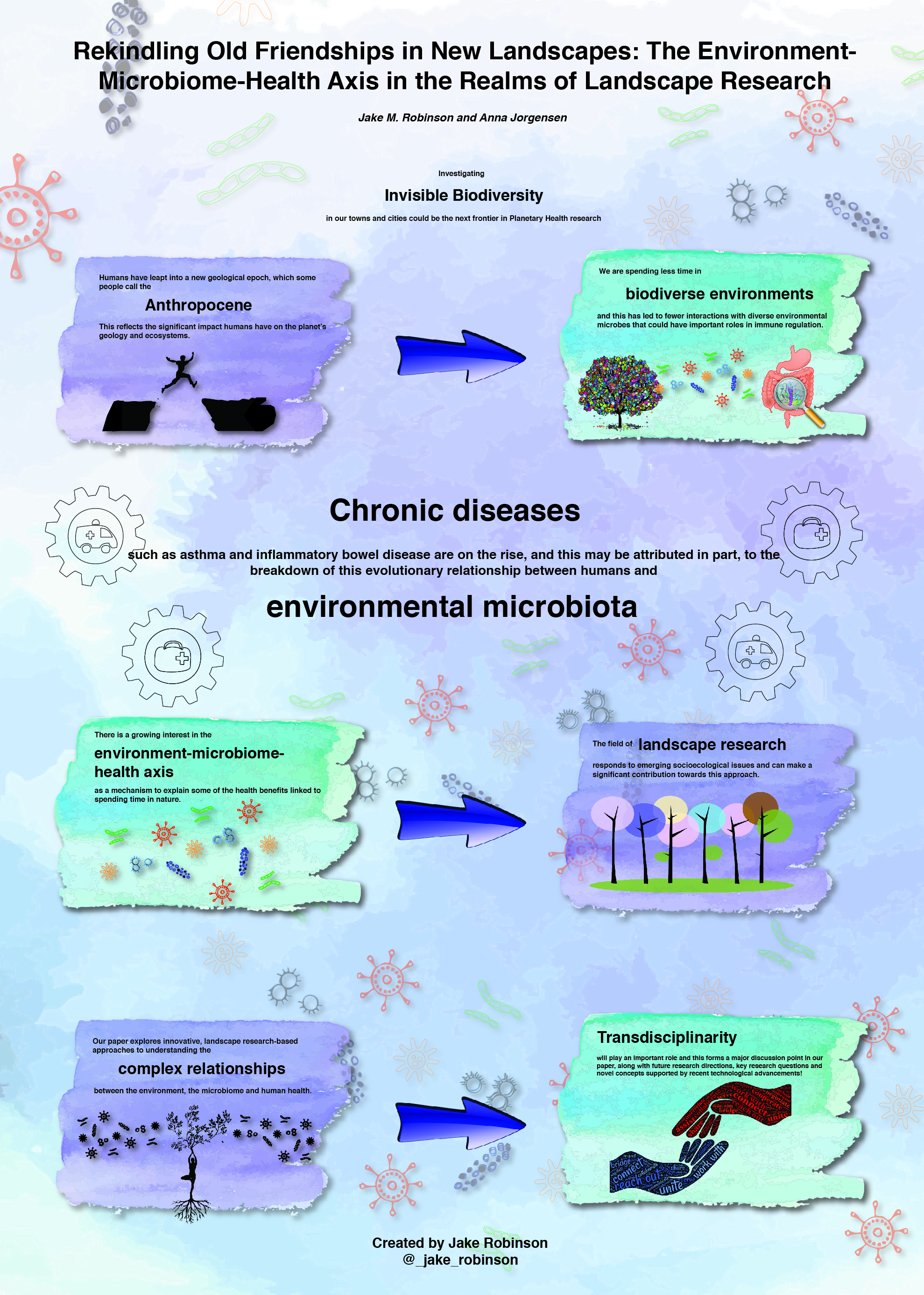 In this infographic Jake Robinson summarises his new Perspective article with Anna Jorgensen in People and Nature Rekindling old friendships in new landscapes: The environment–microbiome–health axis in the realms of landscape research.