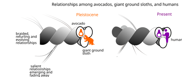 Avocados: Thinking conventionally, the massive seeds of avocados are puzzling. The animals that live where they evolved aren’t big enough to swallow the seeds. Fruit without seed-swallowers are a tremendous waste of plant resources. But they start to make sense when thought of as a relational product of coevolution with now-extinct mega-vertebrate seed dispersers such as the giant ground sloths. Present species can be better understood by investigating relationships with extinct species and ecosystems.
