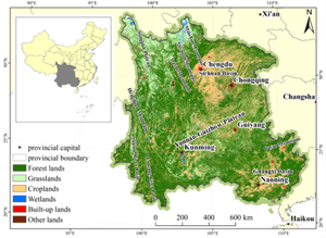 Figure Study area – southwestern China (left) and major county-level area types as defined by the spatial correlations between biodiversity, GEP, and economy in Southwestern China. H/L-H/L-H/L represents the High/Low relationship between biodiversity, GEP, and economy.