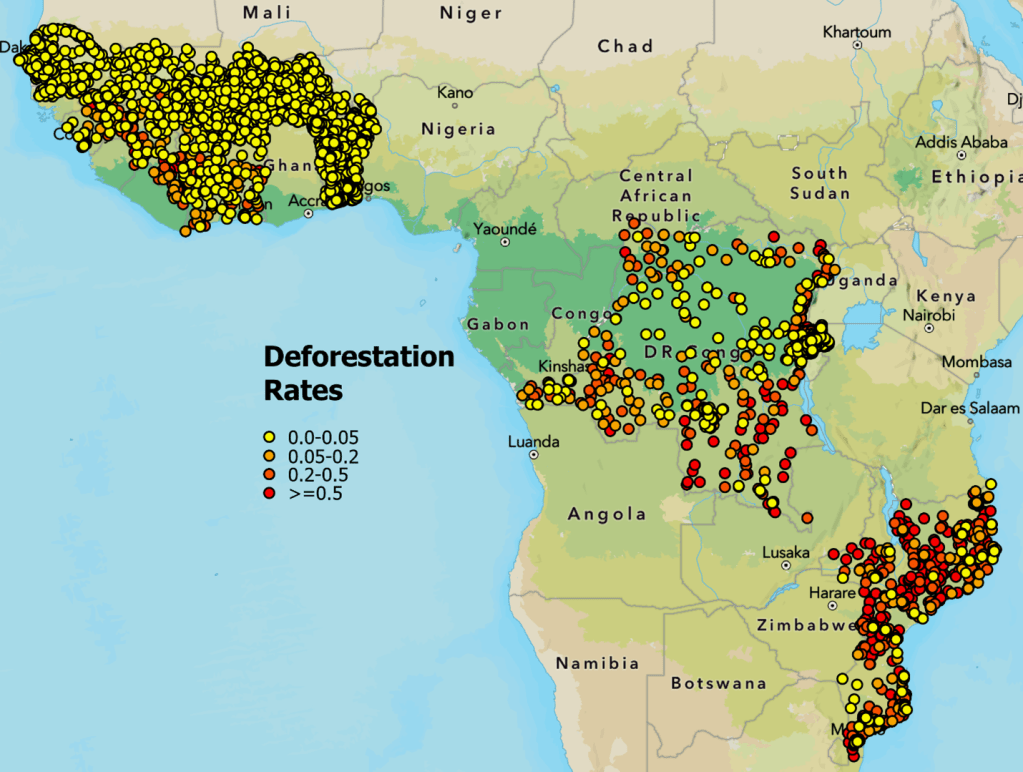We found that deforestation is related to higher malaria rates. The odds of getting malaria increase with more forest loss. Using bed nets generally reduced malaria rates by 24.7%. However, the effectiveness of bed nets in reducing malaria varies with different levels of deforestation. In areas with 20-50% deforestation, bed nets reduced malaria rates by 32.1%. In areas with 5-20% deforestation, bed nets reduced malaria by 24.7%. However, in areas with higher deforestation (≥50%), bed nets did not significantly reduce malaria. These findings suggest that the effectiveness of bed nets in controlling malaria depends on the extent of deforestation and human activities in these areas.