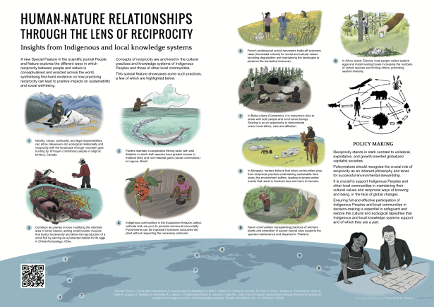 From an editorial by Irene Teixidor-Toneu, Álvaro Fernández-Llamazares, Ricardo Alvarez Abel, Gantuya Batdelger, Elicia Bell, Sophie Caillon, Mauricio Cantor, Joel E. Correia, Sandra Díaz, Jonathan Fisk, Alexander Greene, Spencer Greening, Simon Hoyte, Raivo Kalle, Gabriela Loayza, Giulia Mattalia, Rommel Montúfar, Jaime Ojeda, Suwichan Phatthanaphraiwan, Ismael Vaccaro, and Natalie C. Ban introducing the People and Nature Special Feature ‘Human–nature relationships through the lens of reciprocity: Insights from Indigenous and local knowledge systems‘.