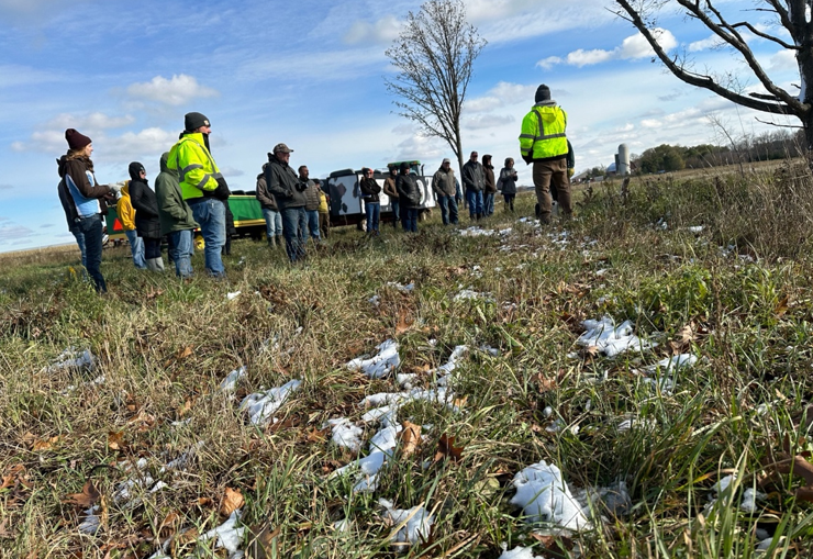 Photo caption: Farmers learning about conservation agricultural practices at a farm tour led by a demo farm leader in the Wisconsin Demonstration Farm Network Program.